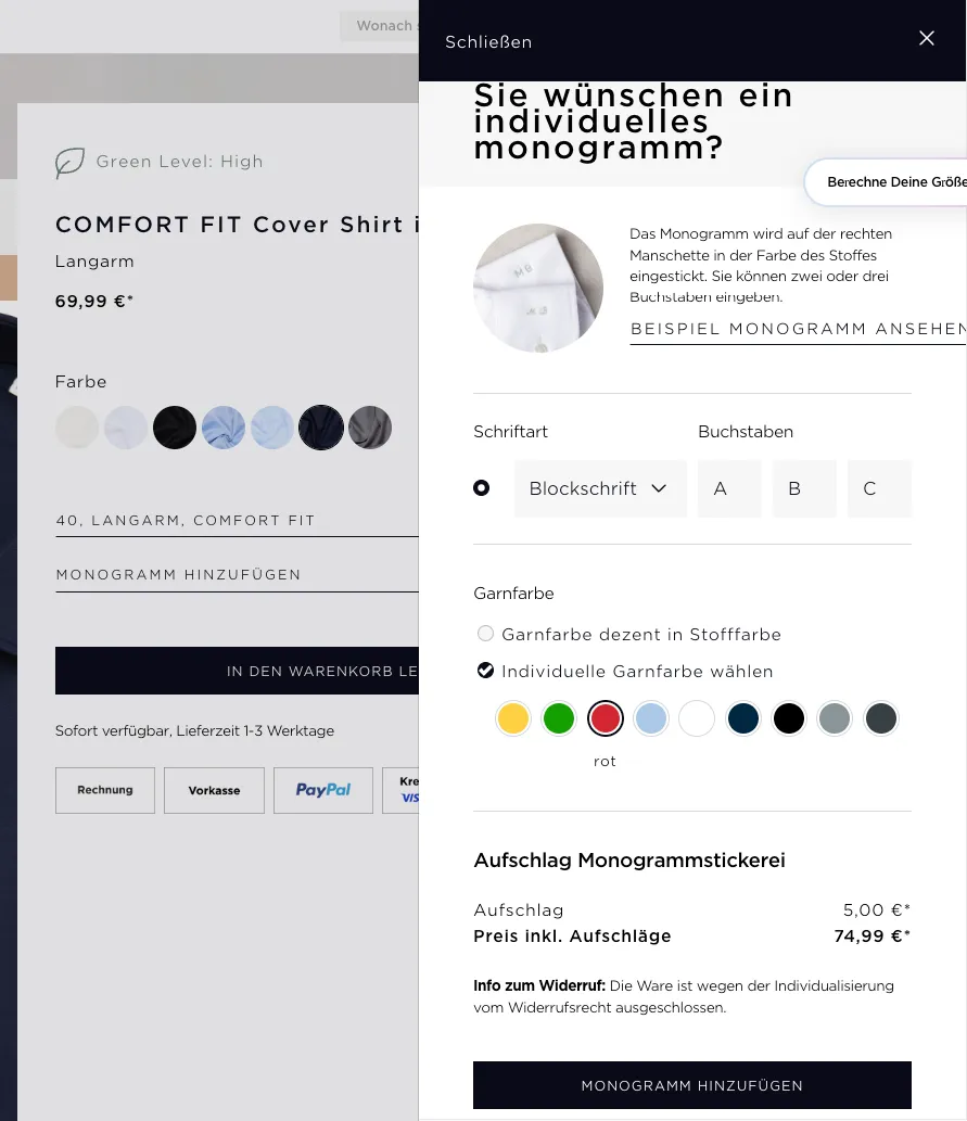 - Ready2Wear integration (shirts can get delivered already washed and ironed)