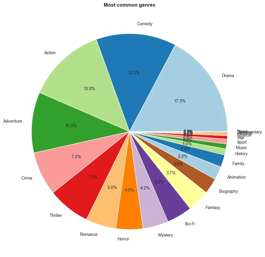 Most common genres: Adventure, Action, Drama also have max gross values. Interesting that Comedy gets replaced by Fantasy, which is only about 3.7%