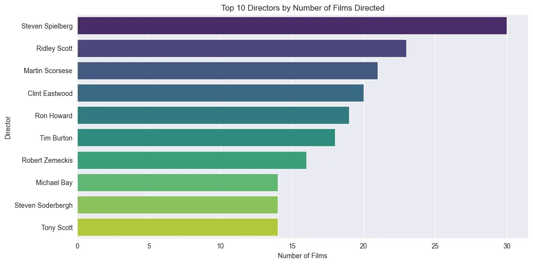 sns.barplot(x=top_directors.values, y=top_directors.index, hue=top_directors.index, palette="viridis", legend=False, orient='h')