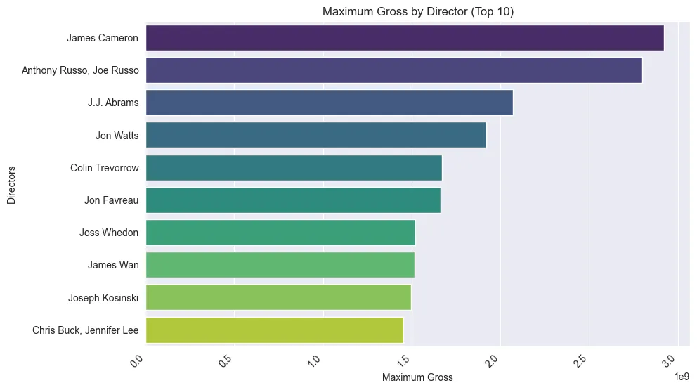 sns.barplot(x=max_gross, y=director_names, hue=director_names, palette="viridis", legend=False, orient='h')